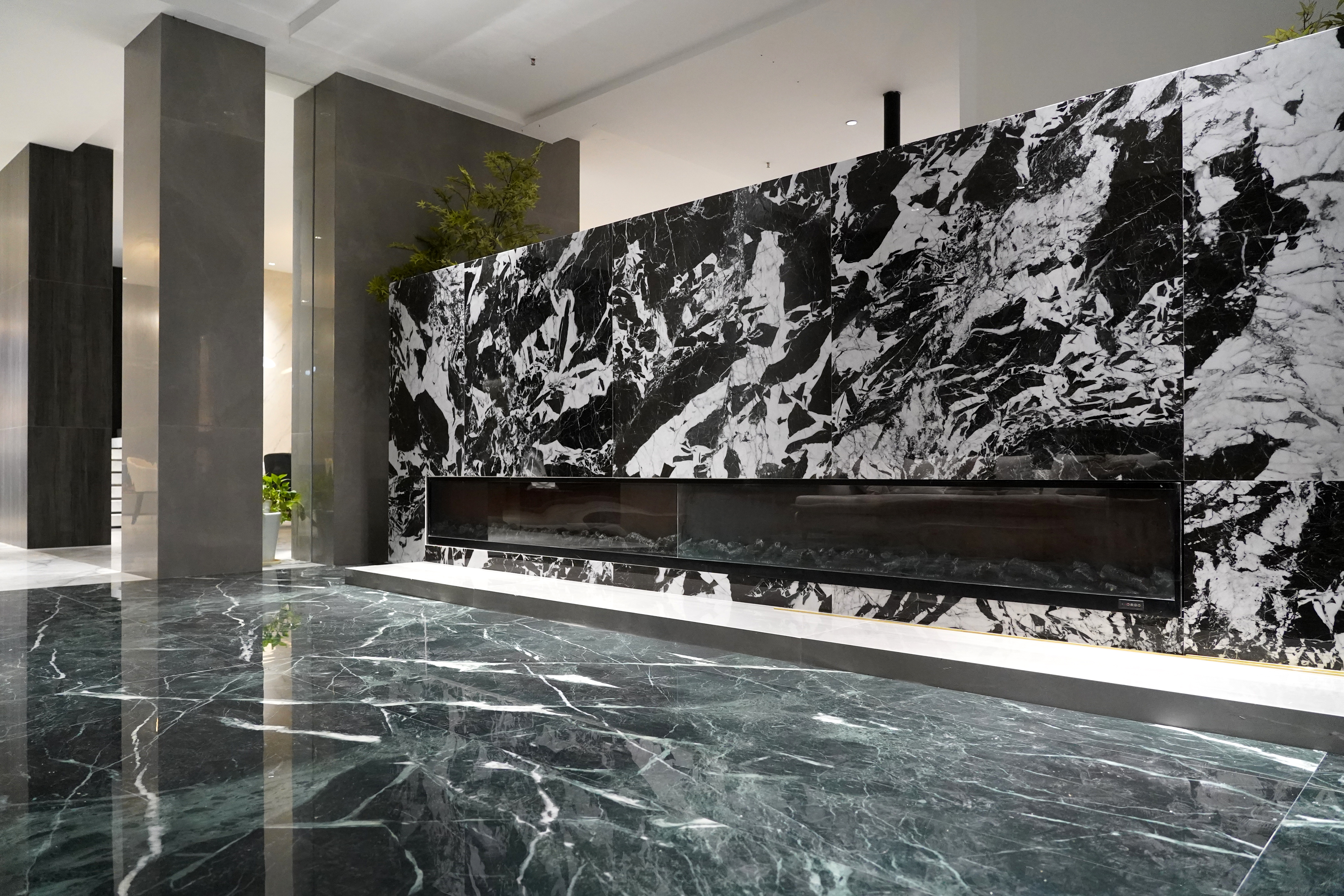 300多款產品:涵蓋超級巖板、珍稀奢石、經典理石、藝術聯名、砂巖、水泥磚、木紋磚等